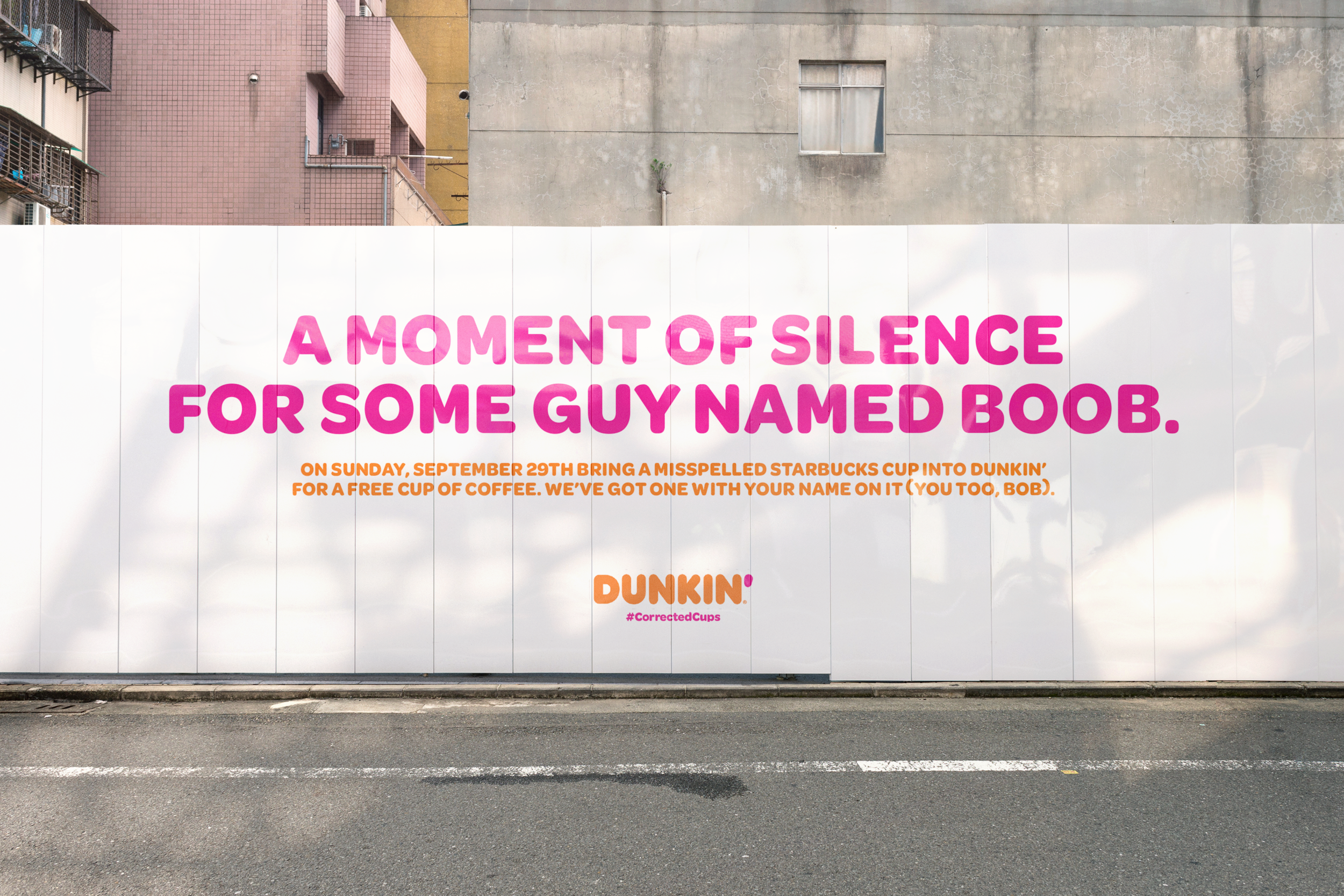 Activation: Bring a misspelled Starbucks cup into Dunkin’ on National Coffee Day for a free cup of coffee poured into one of our new #CorrectedCups.